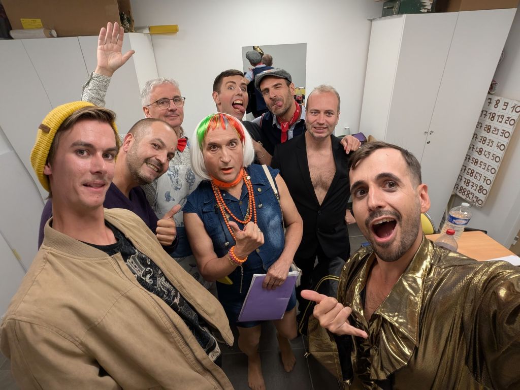Et le lendemain, rebelote au Swing, un bar gay du centre-ville de Nice, où se produisent d’ordinaire des drag queens, quand il n’y a pas de soirées karaoké. Tout au fond se trouve en effet une belle scène, où la troupe s’est à nouveau régalée avec ses personnages déjantés et ses allusions à l’actualité.