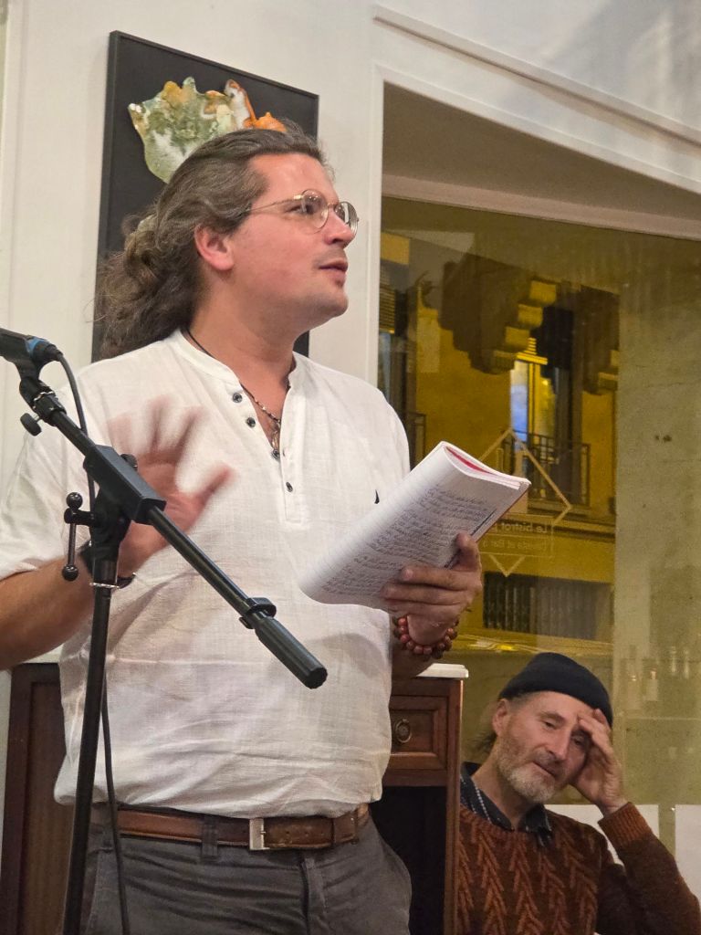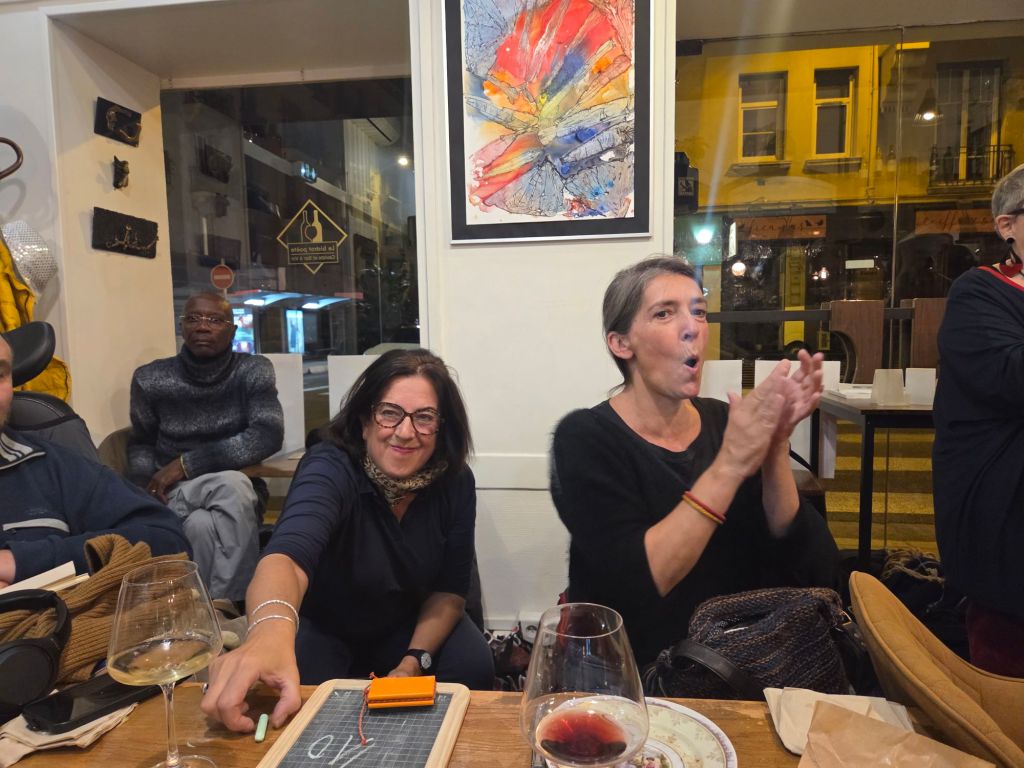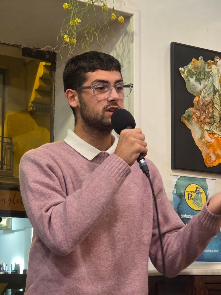 Ensuite, les candidats se sont succédé au micro, chacun apportant sa touche personnelle à l’événement. On peut les féliciter pour l’originalité et la diversité de leurs prestations, de la tristesse à l’humour en passant par la colère. Il y avait des participants de tous âges, de l’étudiant au retraité. Moi, pour cette fois, j’étais membre du jury, avec deux autres amies passionnées de culture et d’art. Je devais donc noter les prestations sur dix, en prenant en compte à la fois le texte poétique lui-même et l’engagement performatif des candidats. Un autre convive se chargeait d’être « la loi », s’assurant que les règles étaient bien respectées, notamment la règle de temps (trois minutes, avec une tolérance de dix secondes). Mais nous n’avons pas trop sanctionné les poèmes longs !