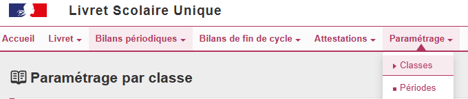 - Dans les onglets qui s’affichent en haut de l’écran, choisissez « Paramétrage », puis « Classe ».