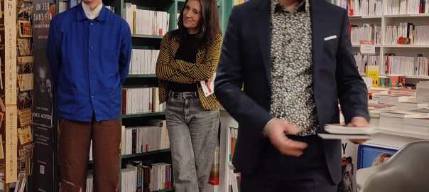 Lundi 16 mars 2026, 19h30, librairie Masséna. Chaises rapprochées, lumière crue, au milieu des livres. Public fidèle, visages connus, d’autres moins. J’anime la rencontre. Face à moi, deux poètes : Sabine Venaruzzo et Baptiste Lochon. Questions et réponses. Tisser un fil. Trouver des points de contact, de convergence et de divergence. Mettre en lumière deux manières d’habiter le poème.