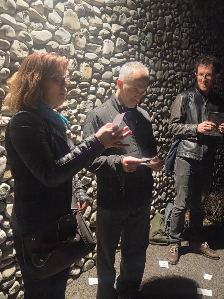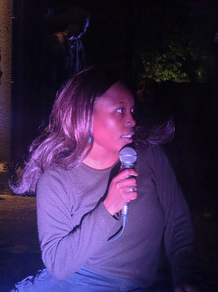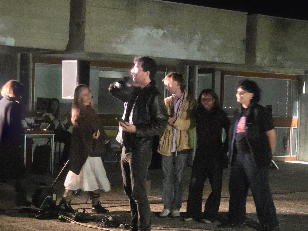Cette année, la soirée s’est entièrement passée dans les espaces extérieurs de la Villa, ce qui est une excellente idée. Les étudiants ont imaginé un parcours ponctué de performances dans les différents espaces, avec une grande attention portée aux différents tableaux, à leur aspect visuel et scénique.