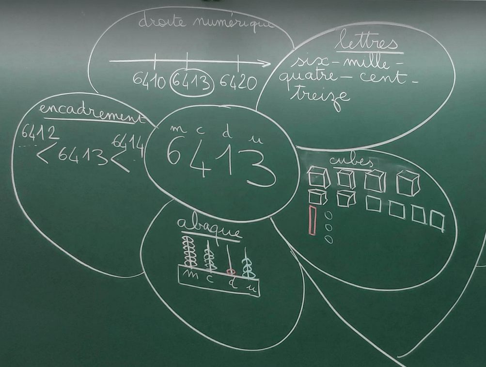 - Passer d’une représentation à une autre, en particulier associer les noms des nombres à leurs écritures chiffrées.