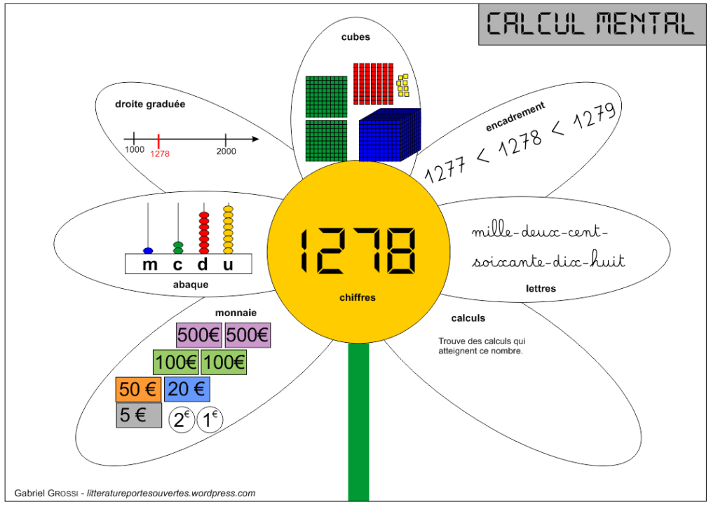 En tant que TRS, je suis dans une école différente chaque jour. Le calcul mental est enseigné tous les jours, et lorsqu’il s’agit de mon jour à moi, je propose un rituel décroché de celui de la titulaire, tout en restant cohérent avec ce qu’elle propose. Cela me permet de ne pas empiéter sur ses séances, tout en travaillant le calcul mental, avec des activités qui invitent à la recherche et à la réflexion.