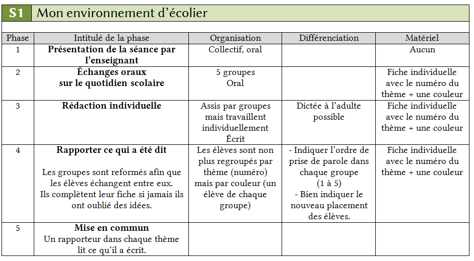 | 1 | Prise des représentations initiales (dessin) | Prep 1 | — |