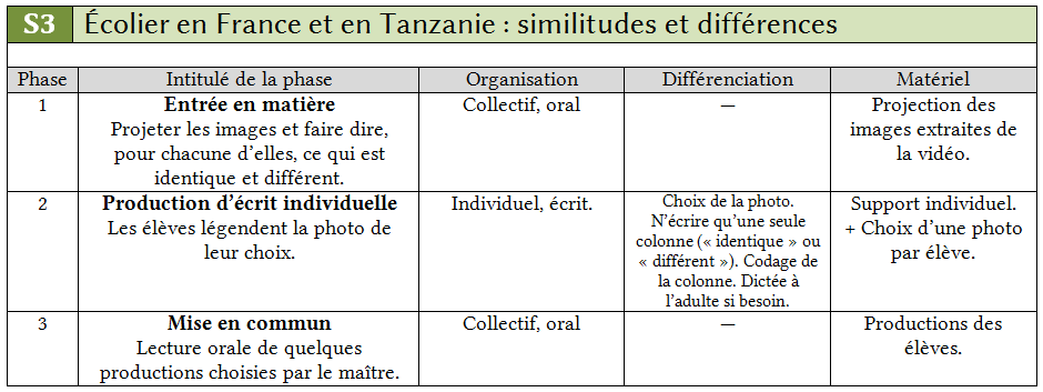 | #3 | Écolier en France et en Tanzanie : similitudes et différences | Aperçu S3 | Doc S3 |
